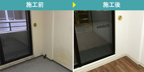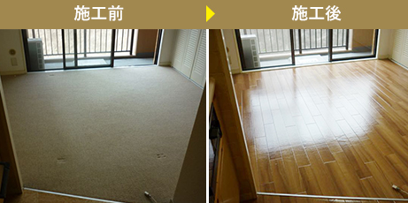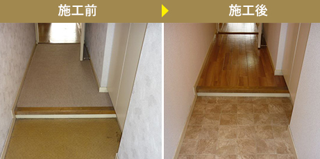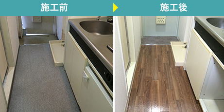 居室と廊下の床は、既存がカーペットからクッションフロアへの張替え(21平米/¥78,000(下地調整費含む))