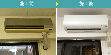 エアコンがひどくカビ臭く、また風向の羽の部分の調子も悪いとのことでした。 エアコンクリーニングでも臭いは取れますが、すでに15年前の機種ということで、以後のトラブルの可能性も考慮して交換のご依頼になりました。エアコンは修理にも費用が高いため、修理を重ねるよりもある程度のタイミングで交換したほうが、結果的に安く済むケースが多いです。