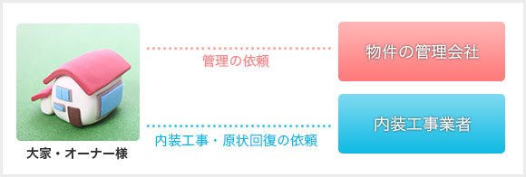 しかし、そもそもが不当権益のようなものですのでお客様であるオーナー様が悩むものではありませんし、実際に、内装工事を直接発注された事によって管理物件やオーナー様の扱いが悪くなったという話も聞いた事はございません。
